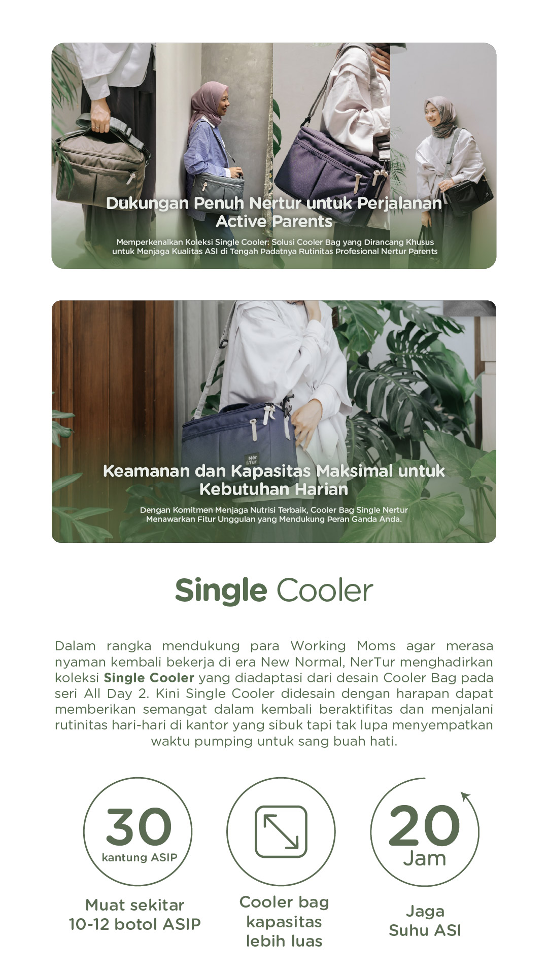 Dalam rangka mendukung para Working Moms agar merasa nyaman kembali bekerja di era New Normal, NerTur menghadirkan koleksi Single Cooler yang diadaptasi dari desain Cooler Bag pada seri All Day 2. Kini Single Cooler didesain dengan harapan dapat memberikan semangat dalam kembali beraktifitas dan menjalani rutinitas hari-hari di kantor yang sibuk tapi tak lupa menyempatkan waktu pumping untuk sang buah hati.